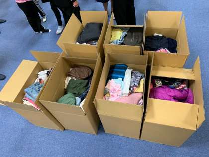 学校に持ってきていただいた服は難民キャンプなどに届けられます。