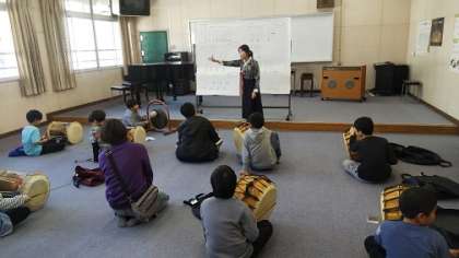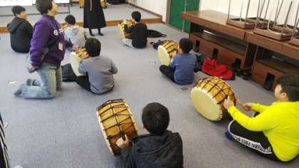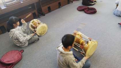 5年生が朝鮮半島に伝わる民族楽器で、演奏をしました。