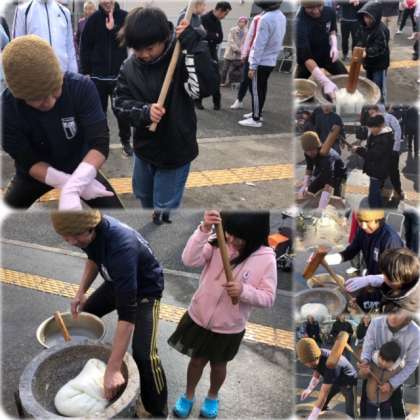晴天に恵まれ、地域の方の前々日からの準備もあり120kgのもち米をつきました!