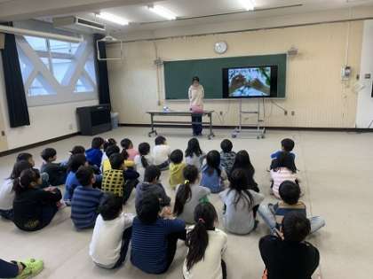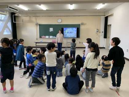 最後は韓国・朝鮮の絵本を大きなテレビ画面で読み聞かせ(^^♪