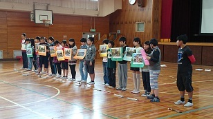 6年生がリーコーダーを演奏した後、全員で「ひろしまのあるくにで」を歌い、集会は終了しました。