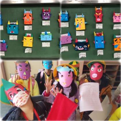 下校時間にもお面をかぶったかわいい鬼たちがあちこちに出没していましたwww