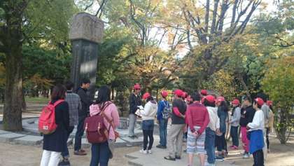 原爆の子の像、韓国人慰霊碑では、千羽鶴と亀のレリーフをそれぞれ捧げました。子どもたちが吹いたリコーダーの音色が、青空に広がっていきました。
