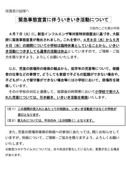 臨時休業中のいきいき活動についてお知らせします。