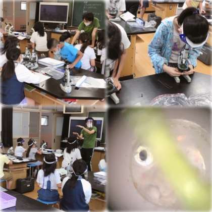 5年生は理科の学習で顕微鏡を使ってメダカのたまごの観察をしました。