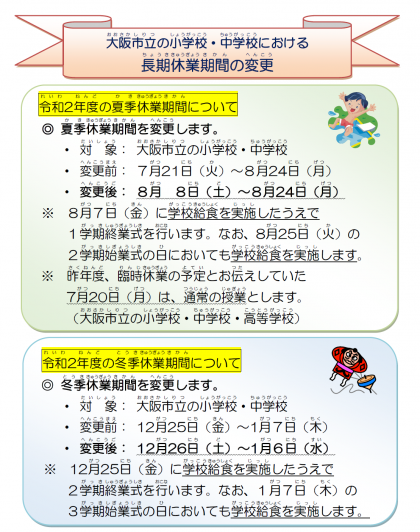 長期(夏季・冬季)休業期間の変更と教育課程の見直しについて