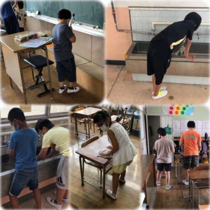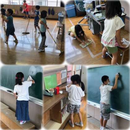 掃除の様子をのぞいてみると、汗を流しながらいっしょうけんめい頑張る姿があちこちで見られます。