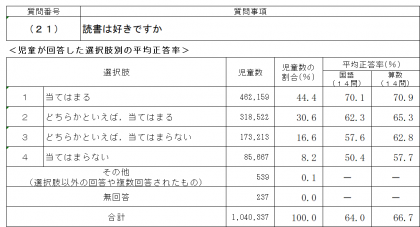 上図は、令和元年度の全国学力・学習状況調査のデータです。「読書が好きな子どもは、学力が高くなる傾向にある」ということが読み取れます。学校でも、読書が好きになる取組を推進しています。ご家庭でも、読み聞かせをしたり、図書館に行ったりすることで、本や活字に触れる機会をつくることができれば素敵ですね。