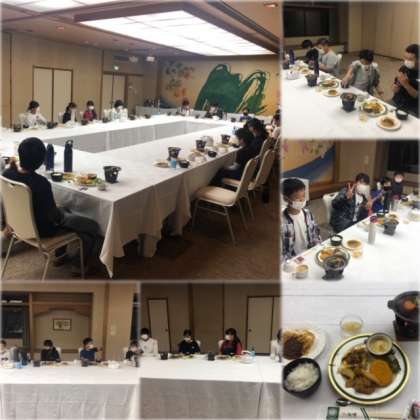 6年生は、17時10分に宿舎に到着し、夕ご飯を食べています。「みんな元気です」という報告を受けています。この後は、少し休憩してから入浴、そして今日の活動の振り返りです。22時には、就寝する予定です。