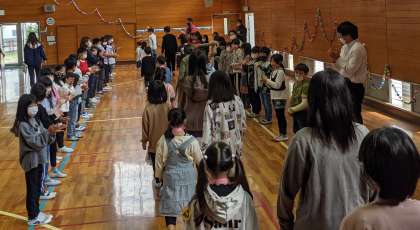 上の写真は、1年生との対面式で6年生が1年生と一緒に入場している様子です。優しい笑顔と声かけで1年生を導いてくれました。6年生の皆さん、ありがとうございます!