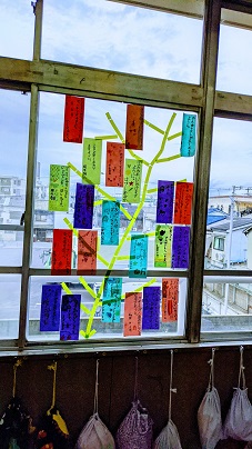 教室の笹にはたくさんの願い事。 みんなは何を願いますか(^_-)-☆