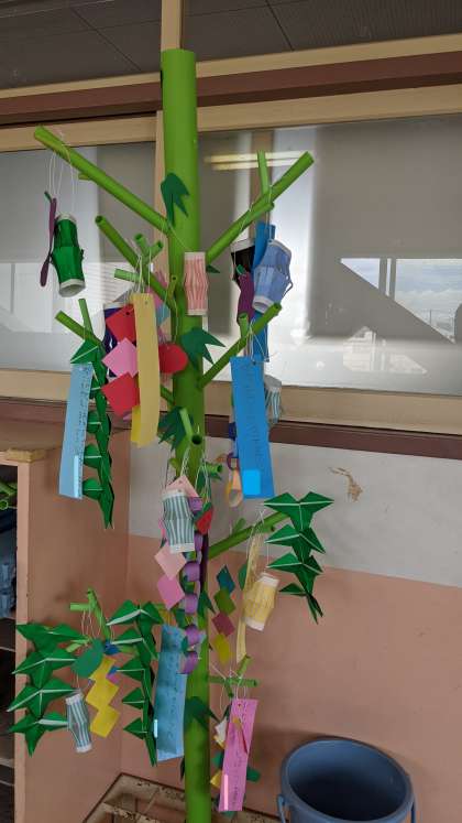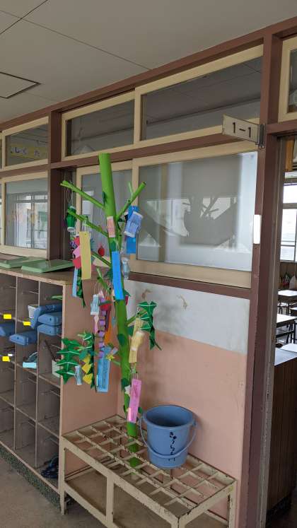 1年生の教室に七夕の笹が飾られています(^_-)-☆