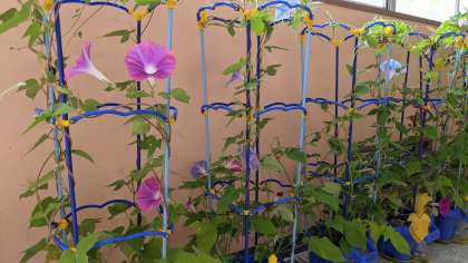 朝顔が朝顔に(^_-)-☆(1年)