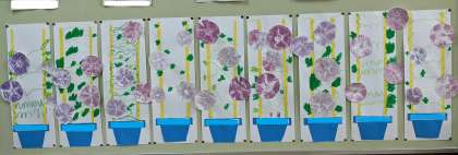 絵具やクレヨンとは一味違う朝顔の完成です(^^)/