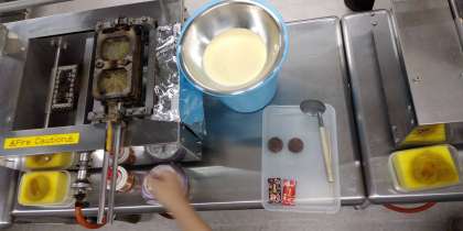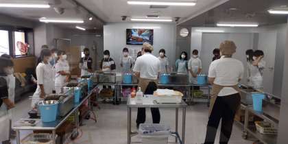 広島の代表銘菓であるもみじを形どったもみじ饅頭作りを体験します。上手にできるといいですね。