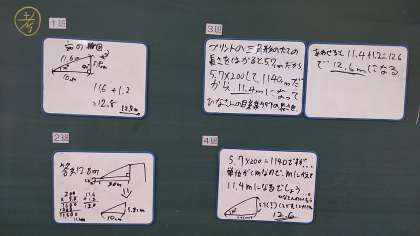 このように、学びを深めることができました。下の写真がグループで考えた校舎の高さの測り方です。うまくまとめることができていました。