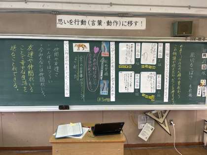 子どもたちは、物語を通して、自分たちの生活や学級や友だちのことを考えることができました。友だちとは何かについて、それぞれが自分の生活や言動を振り返り、今後の仲間づくりに活かされる授業となりました。