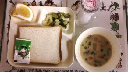 スイートコーンを使っています。ホワイトルウは給食室で作ってい
