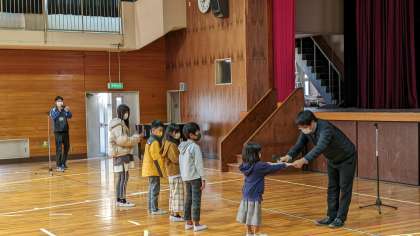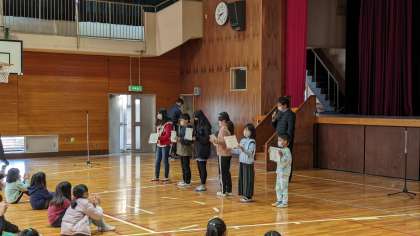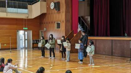 上の写真が、その表彰式の様子です。表彰状をもらった子どもたちは、少し恥ずかしそうに、でも嬉しそうな表情をしていました。