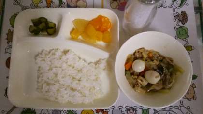 「きゅうりのからみづけ」は、塩ゆで(給食では焼き物機で蒸しもして