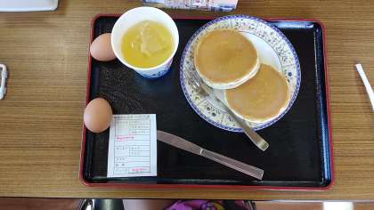 私も我が子を連れて、ふれあい喫茶でお食事をさせていただきました。トーストorホットケーキ、ゆで卵、ドリンク付きで100円です。