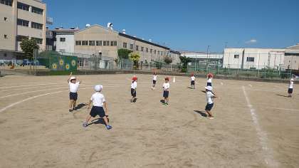 2年生は、練習の時に去年の経験を活かし、1年生に動き方や並び方を教えている場面が見られます。2年生の子どもたちは、とっても優しくて素敵です。当時も、仲良く運動する姿が見られると思います。10月1日(土)の運動会本番が待ち遠しいです。