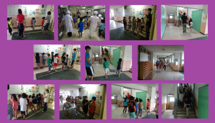 7月16日(木)で今学期の給食はしゅうりょうでした。各学年とも、きちんと整列して給食室に給食を取りにきました。