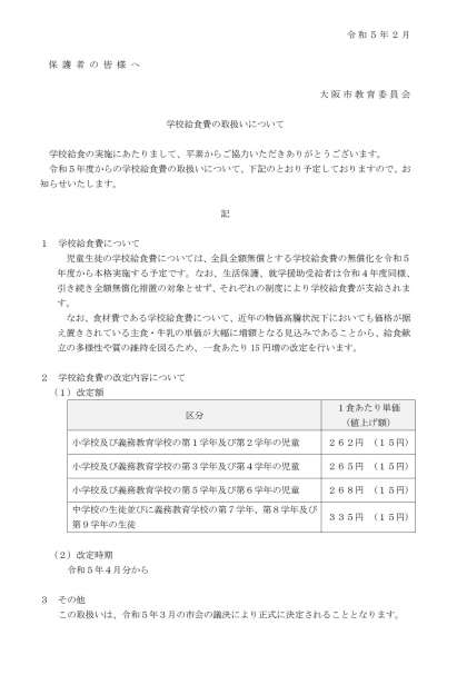 令和5年度学校給食費の取り扱いについて