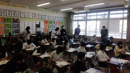 子どもたちは挿絵や文章表記からヒントを探し出して、チュニジアの部屋の特長をつかむことができました。チュニジアの気候や文化に合わせて、家がつくられていることを学び、日本の家との違いにも気づくことができたようです。3年生の子どもたちは、集中して学習に取り組むことが得意です。意見もたくさん発表していました!
