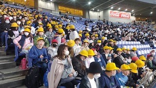 観戦中です。球場の広さや歓声、打球音、球のスピード。大迫力ですね。