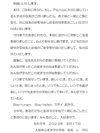 校長室の窓vol54「学校長式辞」〜卒業生に向けて〜