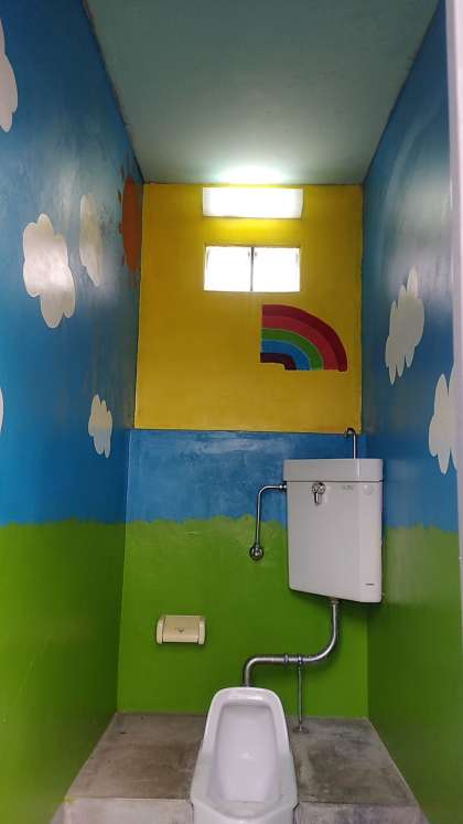 今回の校長室の窓は、「プールのトイレを明るくしようプロジェクト」〜完成〜のお知らせです。児童会活動の子どもたちがトイレで下絵を描き、管理作業員さんが美しく丁寧に色付けをしてくれました。