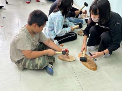 柄の部分をやすりでみがいて色を塗り、ヘッドを取り付けたら完成です!