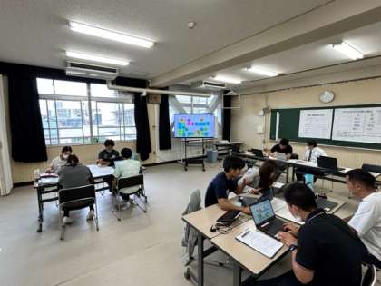 大阪市教育センターから、算数科スクールアドバイザーの先生をお招きし、ご指導いただきました。教員もパソコンを使って意見を出し合い、子どもが意欲をもって主体的に取り組めるより良い授業づくりについて討議を行いました。