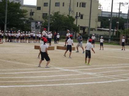 応援団の人たちを中心にして、応援合戦の練習をしました。みんな大きな声を出してがんばりました。