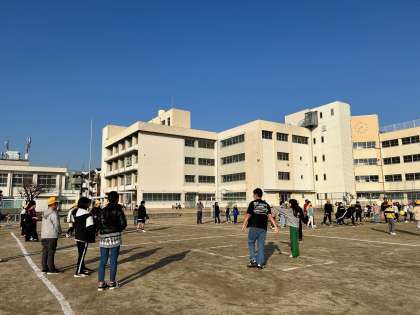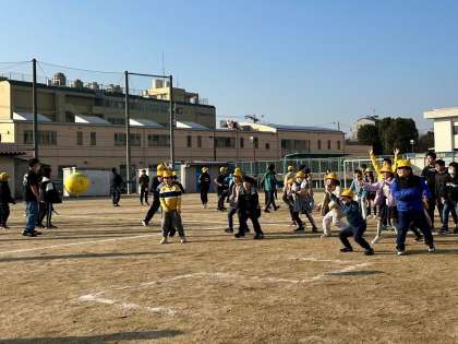 久しぶりの運動場での集会。青空のもと、今日はあたたかさもあるなかで、楽しくドッジボールをすることができました。