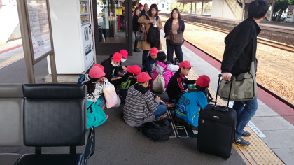 JRの宮島口駅に着きました。ここから在来線で広島駅まで行き、そこから14時56分発の新幹線「ひかり596号」で新大阪駅へ向かいます。予定どおり順調に進んでいます。