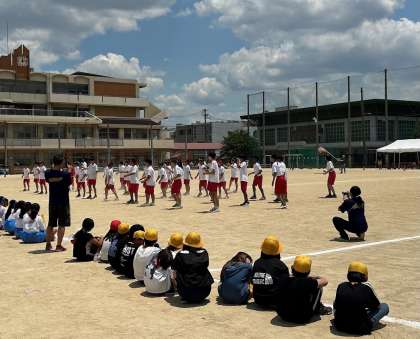 中学校の生徒自身が考えたダンスや代表リレーを見せてもらいました。6年生は、卒業生に声援を送ったり楽しく演技する姿に拍手したりするなど興味をもって見学していました。