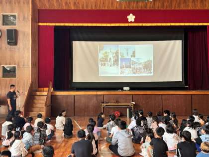 6年生の広島への修学旅行に向けて、今日の集会は全校で平和について考えました。
