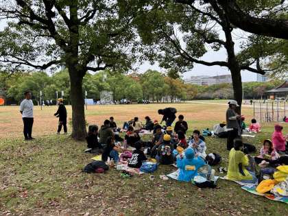 ほんの少しポツポツ雨が降りだしましたが、木の下で雨をしのげています。