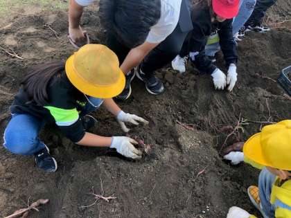 地域の方が育ててくださったさつまいもをみんなで収穫しました。