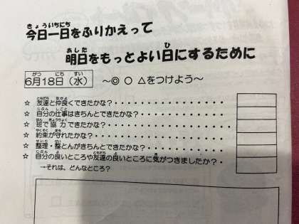 これから自分が成長するために頑張りたいことを、今日一日を振り返って書いています