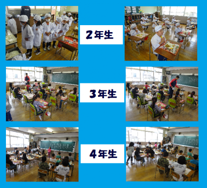 1年生の給食当番は6年生がお手伝いしてあげています。