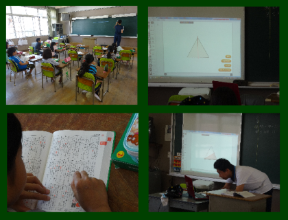 6年生:算数科「対称な図形」の学習です。人数を2つに分け、デジタル教科書を使って線対称な図形の対称の軸について学習していました。みんな、真剣に取組んでいました。