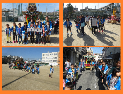 11月13日(日)、小春日和のこの日、西成区民まつりが盛大に開催され、本校のこどもたちも、天下茶屋中学校から区民センターまでの「子どもみこしパレード」に参加しました。