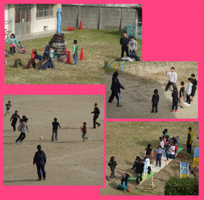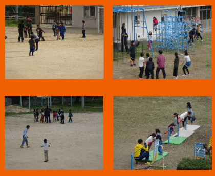 次の写真は、本校の昼休みのようすです。いろんな先生方運動場に出て子どもたちと共に遊んでいます。これぞまさしく「がんばる先生」。