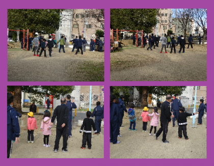 毎朝、施設の利用者さんたちは、公園で体操をしています。冬休みの間、本校の「いきいき」に参加している子どもたちが、その体操に参加しました。
