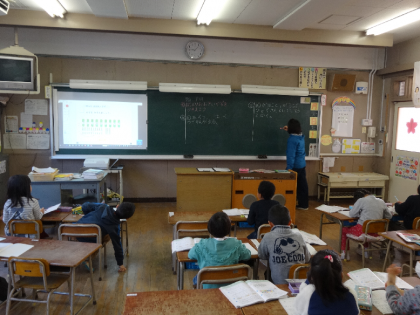 1月23日から2月3日まで、教育実習生が来ています。インフルエンザで2日間、授業を見たり担当したりすることができなかったのですが、1月28日の土曜授業でも算数を担当して頑張っていました。