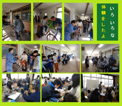 上の写真、校長先生は、自転車をこいで発電しているところでした。