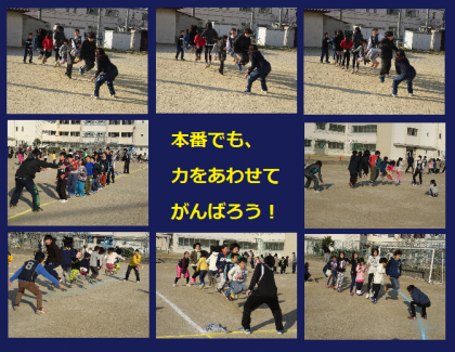 2月16日(木)の集会では、大会に向けて大なわとびの練習をしました。